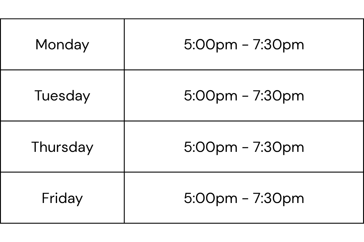 Monday to Wednesday | 6AM to 9PM